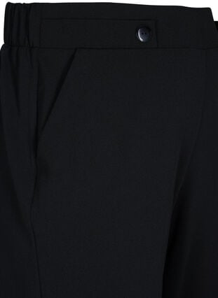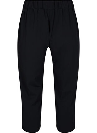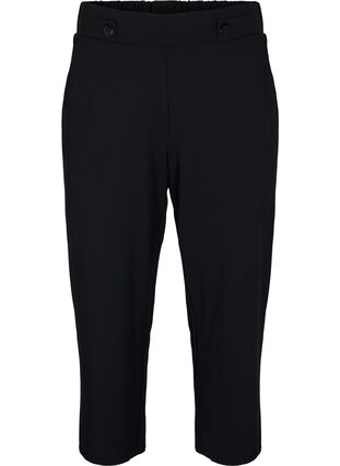 Väljät ja mukavat 7/8-pituiset housut. Yksinkertainen ja klassinen design. Sivutaskut, nappiyksityiskohdat sekä joustava vyötärö, mikä takaa mukavan istuvuuden.
