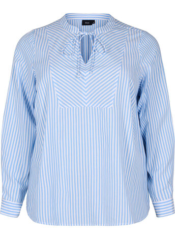 Raidallinen pusero, jossa on 3/4 hihat ja napitus