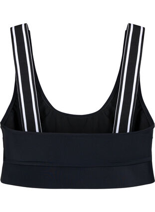 Yksivärinen bikiniyläosa leveillä, raidallisilla olkaimilla ja pyöreällä pääntiellä. Yläosa on valmistettu kaksinkertaisesta kankaasta, joka on mukava yllä ja tukee hyvin. Ilman kaaritukia ja toppauksia. Joustoreuna rintojen alla.