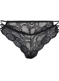 Brasilialaiset pitsialushousut, joissa on normaali vyötärön korkeus ja nauhat sivussa.