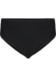 Bikinihousut kreppimateriaalista, jossa on kaunis tekstuuri ja mesh-vuori edessä lisätukea ja mukavuutta varten. Housuissa on normaali vyötärönkorkeus leveällä joustavalla vyötärönauhalla sekä brasilialainen istuvuus, joka peittää vain pienen osan pakaroista, luoden kohottavan ja muotoilevan vaikutelman. Materiaali on kestävää ja kloorinkestävää, mikä takaa pitkän käyttöiän ja värin säilymisen.
