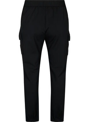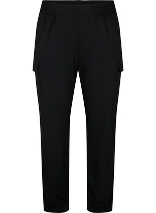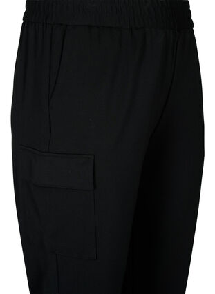 Cargo-housut, joissa on joustava vyötärönauha ja sivutaskut. Housut on valmistettu miellyttävästä ja joustavasta viskoosisekoitteesta. Niissä on väljempi istuvuus reisien kohdalla ja ne kapenevat nilkkoihin päin ja päättyvät joustavaan resoriin.