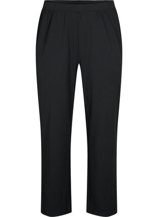 Yksiväriset housut joustavalla vyötäröllä. Ne on valmistettu mukavasta ja joustavasta materiaalista väljässä mallissa.