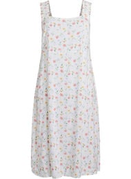 Midi-pituinen kesämekko, jossa on neliönmuotoinen kaula-aukko ja leveät, joustavat olkaimet röyhelöreunuksilla. Mekossa on empire-leikkaus rinnan alla ja rypytetty selkäosa, mikä takaa joustavan ja mukavan istuvuuden. Tämä mekko sisältää 100 % LENZING™ ECOVERO™ Viscose-kuituja, jotka tukevat luonnollista pehmeyttä ja laskeutumista.