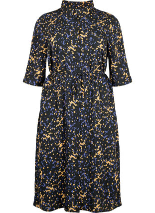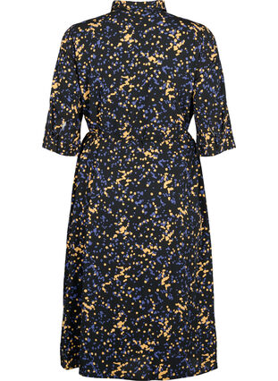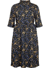 Midimittainen paitamekko upealla kuosilla. Mekossa on 3/4-hihat, napitus, pienet sivuhalkiot ja kaunis irroitettava vyötärönauha, joka korostaa naisellista siluettia.