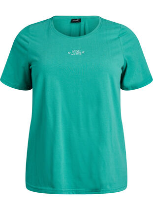 Siisti T-paita, jossa on trendikäs kuvio rinnassa. T-paidassa on normaali istuvuus pyöreällä pääntiellä ja lyhyillä hihoilla.