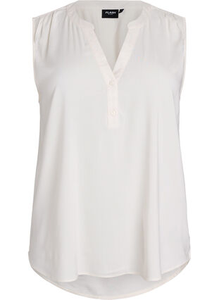 Hihaton pusero, jossa on V-pääntie ja lyhyt nappilista, hennot rypytetyt yksityiskohdat olkapäillä ja selässä, normaali istuvuus sekä pyöristetty helma. Tämä Pusero sisältää 98 % LENZING™ ECOVERO™ -viskoosikuituja, jotka lisäävät luonnollista pehmeyttä ja laskeutuvuutta.