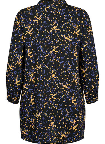 Pitkähihainen tunika, jossa on kaunis kuosi. Tunikassa on pyöreä pääntie nappisuljennalla, pienet sivuhalkiot sekä väljä istuvuus.