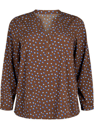 Pitkähihainen pusero v-yksityiskohdalla ja napeilla edessä. Puserossa on normaali istuvuus ja upea kuosi.