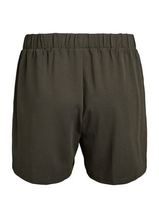 Yksiväriset shortsit, joissa on sivutaskut. Näissä shortseissa on korkea vyötärö, jossa on takana kuminauha, ja shortseissa on väljä istuvuus.