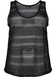 Hihaton toppi, jossa on pyöreä pääntie ja normaali istuvuus. Tässä topissa on kaunis pitsikuvio ilman vuorta.