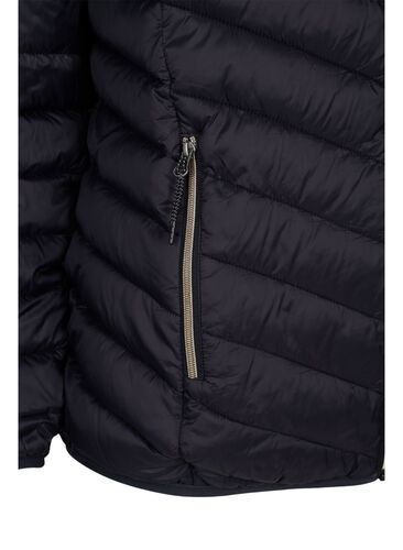 Lyhyt kevyttakki, jossa on huppu ja vetoketju edessä. Takissa on käytännölliset vetoketjulliset taskut sekä joustavat hihansuut ja helma, jotka lisäävät tuulenpitävyyttä. Takki on vuorattu dupontilla, joka on kevyt täyte, joka pitää sinut lämpimänä ja on hengittävä.