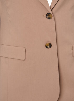 Yksinkertainen ja klassinen bleiseri, jossa on pitkät hihat ja nappikiinnitys edessä.