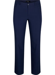 Yksiväriset joustavasta viskoosisekoitteesta valmistetut housut tyylikkäällä ja klassisella designilla. Housuissa on normaali lahkeenleveys ja nappikiinitys vyötäröllä.