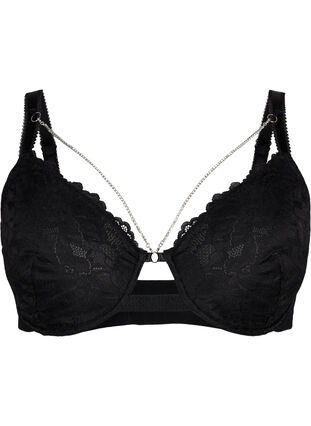 Elegantit, täyskuppiset rintaliivit kaarituilla, korkeilla sivuilla ja extraleveillä, säädettävillä olkaimilla, jotka tarjoavat maksimaalisen tuen ja mukavuuden. Rintaliivit on suunniteltu edestä pitsikoristeilla ja irrotettavalla strasseilla koristellulla ketjulla, joka lisää ylellistä ilmettä.