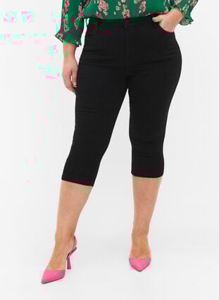 Korkeavyötäröiset Amy-farkkucaprit super slim fit