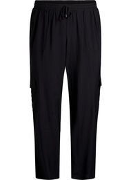 Cargohousut, joissa on sivutaskut, korkea vyötärö ja joustava vyötärönauha säädettävillä kiristysnauhoilla, sekä rento istuvuus ja suora siluetti lantiolta nilkkaan. Näissä housuissa on 87% LENZING™ ECOVERO™ Viscose -kuituja, jotka tukevat luonnollista pehmeyttä ja laskeutuvuutta.