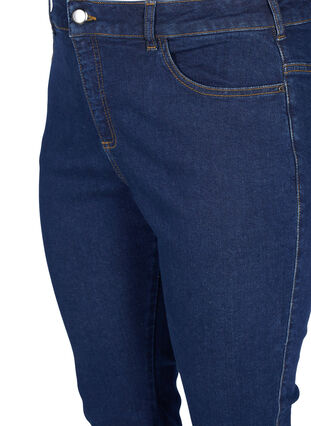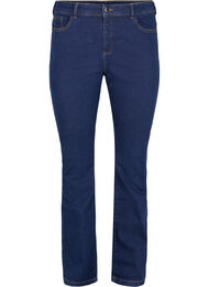 Trendikkäät bootcut-farkut korkealla vyötäröllä. Yksinkertainen malli klassisilla taskuilla ja vyölenkeillä. Valmistettu mukavasta puuvillasta, joka istuu kauniisti.