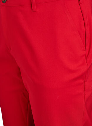 Tyylikkäät housut ajattomassa tyylissä, joissa on korkea vyötärö ja klassinen suora lahje. Housuissa on sivutaskut, takataskut ilman vuorta, vetoketju- ja nappikiinnitys edessä, ja ne on valmistettu mukavasta materiaalista, joissa on hieman joustoa