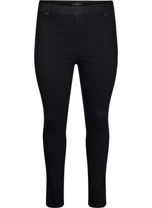 Yksinkertaisen malliset korkeavyötäröiset jeggingsit. Takataskut ja edessä vuorittomat koristetaskut. Nämä jeggingsit on valmistettu joustavasta puuvillasekoitteesta, ja niissä on vyötäröllä kuminauha.