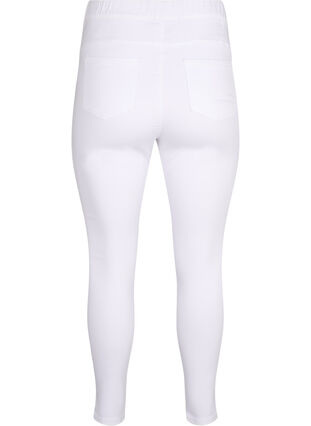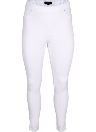 Yksinkertaisen malliset korkeavyötäröiset jeggingsit. Takataskut ja edessä vuorittomat koristetaskut. Nämä jeggingsit on valmistettu joustavasta puuvillasekoitteesta, ja niissä on vyötäröllä kuminauha.