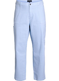 Raidalliset cargo-farkut, jotka on valmistettu joustavasta puuvillasta. Näissä farkuissa on korkea vyötärö vyölenkeillä sekä sisäinen säädettävä kuminauhavyötärö, ja ne kiinnitetään vetoketjulla ja napilla. Farkuissa on suora istuvuus, joka luo suoran siluetin reidestä nilkkaan.