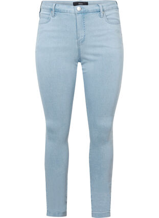 Korkeavyötäröiset kapeasti istuvat farkut, joissa on yksinkertainen ja klassinen design sekä taskut, vyölenkit, vetoketju ja nappikiinnitys. Valmistettu mukavasta ja joustavasta puuvillasekoitteesta.