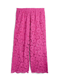 Naisten housut kauniista ja joustavasta pitsikankaasta, joissa on alusshortseilla. Housuissa on korkea vyötärö joustavalla vyötärönauhalla, sivutaskut ja rento istuvuus, ja ne on viimeistelty suloisella aaltoilevalla helmalla alareunassa.