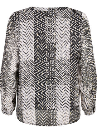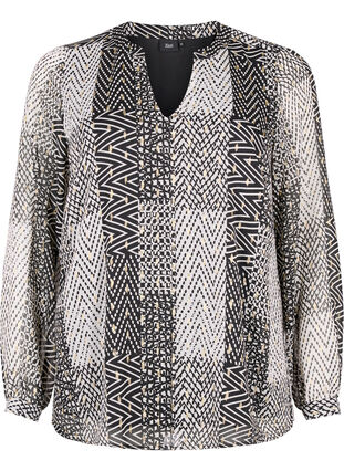 Kaunis kauttaaltaan printattu pusero, jossa on v-pääntie ja suora istuvuus. Puserossa on pitkät, hieman läpinäkyvät hihat, joiden hihansuissa on napit.