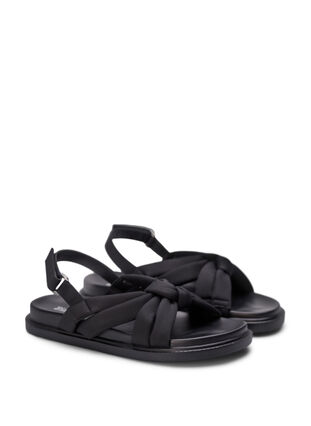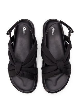 Sandaalit solmuyksityiskohdalla ja leveällä lestillä. Sandaalissa on tarrakiinnitys kannassa ja joustavat paneelit sisäpuolella, mikä takaa mukautuvan ja joustavan istuvuuden, joka mukautuu jalkaasi tarjoten optimaalista mukavuutta ja tukea.