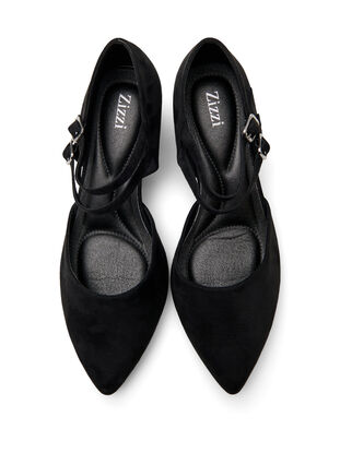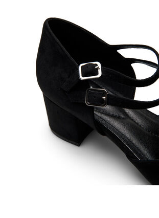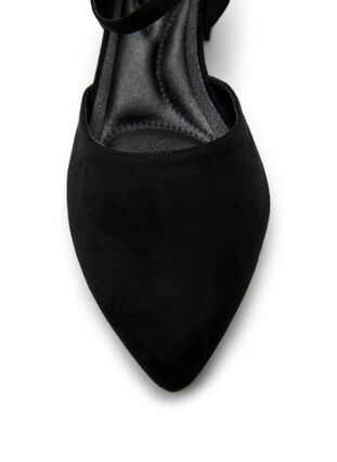 Tyylikkäät avokkaat, joissa on tolppakorko, terävä kärki ja kahdet säädettävät nilkkaremmit, jotka varmistavat tukevan ja mukavan istuvuuden. Suunniteltu leveille jaloille ja tehty keinomokasta.