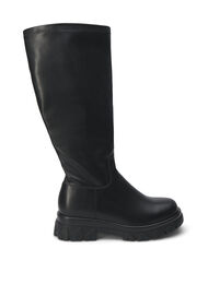 Leveä pitkä saapas klassisella, ajattomalla designilla, jossa on lisäleveyttä varressa ja paksu pohja liukumattomalla kuviolla. Saappaassa on joustava varsimateriaali, pehmeä ja mukava tekstiilivuori sekä vetoketju sisäpuolella, mikä tekee saappaan pukemisesta ja riisumisesta helppoa ja varmistaa optimaalisen istuvuuden.