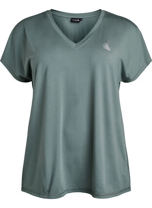 Kiva, yksinkertainen ja sileäpintainen urheilupaita joustavasta kankaasta. T-paidan rento istuvuus antaa hyvän liikkumavapauden, siinä on lyhyet hihat ja tyylikäs V-pääntie.