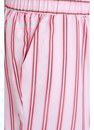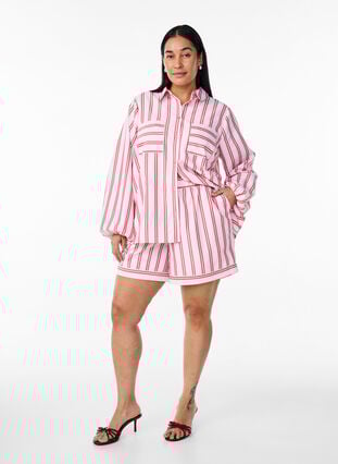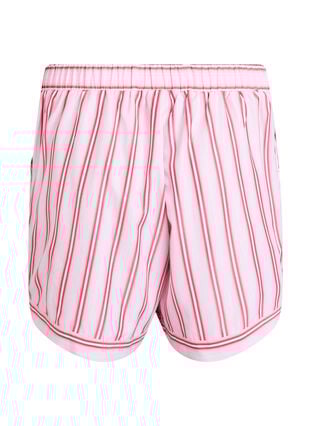 Väljät shortsit, joissa on sivutaskut ja korkea vyötärö joustavalla vyötärönauhalla. Shortseissa on kaunis raitakuvio, ja ne on valmistettu kevyestä ja sileästä materiaalista, joka tuntuu miellyttävältä ihoa vasten.
