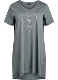 Mukava yöpaita, jossa on V-pääntie, lyhyet hihat ja väljä ja mukava istuvuus A-linjaisella mallilla. Yöpaita on valmistettu 100 % luomupuuvillasta, jossa on yksinkertainen painatus.