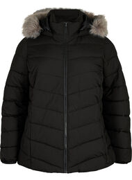 Lyhyt ja käytännöllinen talvitakki, jossa on koristeelliset vinot tikkaukset ja lämmin Sorona®-täyte, joka tarjoaa saman lämmön kuin untuva - mutta kevyempänä versiona. Mallissa on korkea kaulus ja huppu, jossa on irrotettava tekoturkisreunus, joka antaa lisäsuojaa kylminä päivinä. Pinta on vettähylkivä ja pitää kuivana kevyessä sateessa.