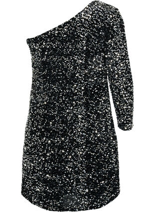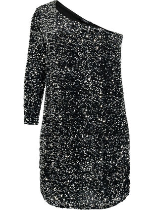 Lyhyt yksiolkaiminen mekko paljeteilla