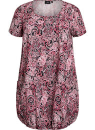 Naisellinen mekko 100% puuvillaa todella upealla kuosilla. Mekossa on lyhyet hihat, pyöreä pääntie ja etutaskut. Joustoreuna helmassa antaa upean istuvuuden.