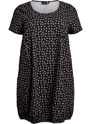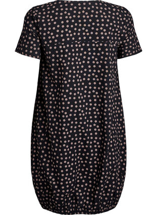 Naisellinen mekko 100% puuvillaa todella upealla kuosilla. Mekossa on lyhyet hihat, pyöreä pääntie ja etutaskut. Joustoreuna helmassa antaa upean istuvuuden.