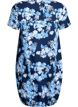 Naisellinen mekko 100% puuvillaa todella upealla kuosilla. Mekossa on lyhyet hihat, pyöreä pääntie ja etutaskut. Joustoreuna helmassa antaa upean istuvuuden.