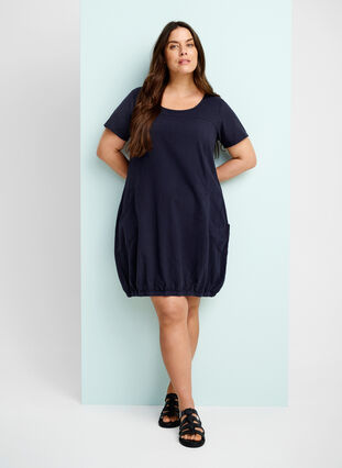 Todella mukava ja yksinkertainen mekko 100% puuvillaa. Mekossa on lyhyet hihat, pyöreä pääntie ja etutaskut. Joustoreuna helmassa antaa upean lookin tälle väljälle mallille.