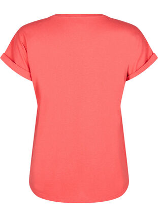 Väljä ja mukava t-paita pehmeästä puuvillasekoitteesta. T-paidassa on pyöreä pääntie sekä lyhyet käärityt hihat.