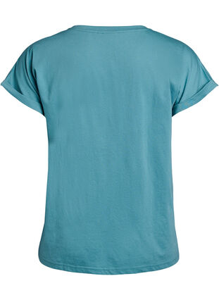 Väljä ja mukava t-paita pehmeästä puuvillasekoitteesta. T-paidassa on pyöreä pääntie sekä lyhyet käärityt hihat.