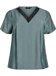Lyhythihainen viskoosipusero, jossa on pitsikoristeet