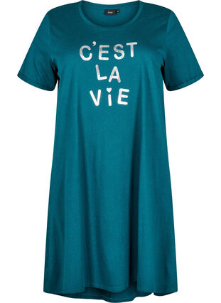 Mukava yöpaita 100% luomupuuvillaa, jossa yksinkertainen kuva rinnassa. Yöpaidassa on lyhyet hihat, joissa voi kääriä reunat ylös, pyöreä kaula-aukko sekä väljä ja mukava A-linjainen leikkaus.