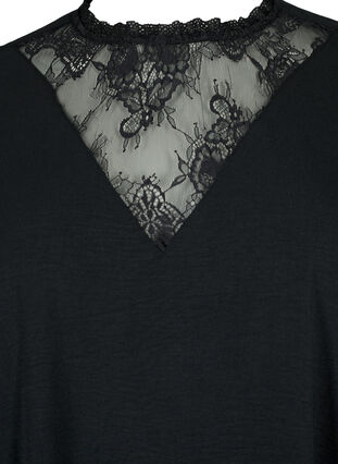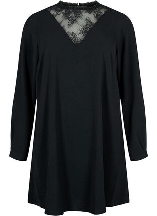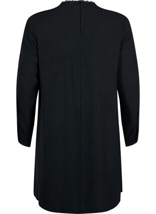 Kaunis yksivärinen mekko, jossa on pitkät hihat, nappikiinnitys ja naisellinen pitsikoriste kaulalla. Mekossa on väljä A-muoto, ja se on valmistettu pehmeästä kankaasta, jossa on kierrätettyä polyesteriä.