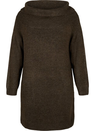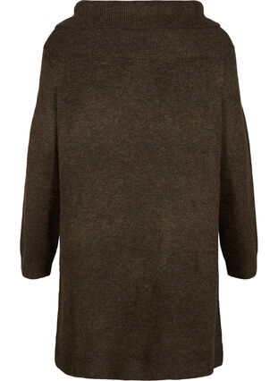 Melange-neulemekko, jossa on pitkät hihat, resorihelmat ja leveä kaula-aukko, jota voi pitää myös olkapään yli.