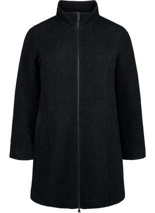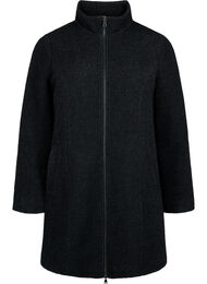 Tyylikäs buklee-takki on valmistettu pehmeästä ja lämpimästä materiaalista , jossa on villaa, mikä tuntuu miellyttävältä ja lämmittävältä. Takissa on normaali istuvuus, korkea kaulus, listataskut ja kaksisuuntainen vetoketjukiinnitys.