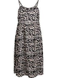 Midi-pituinen hihnallinen mekko, jossa on V-pääntie ja punotut olkaimet. Mekossa on vyötärösauma, ja sen selässä on joustava smokki, joka takaa miellyttävän istuvuuden. Tämä mekko on valmistettu 100 % LENZING™ ECOVERO™ viskoosista, jotka tarjoavat luonnollista pehmeyttä ja drapeerausta.