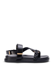 Nahkasandaali punotuilla hihnoilla ja leveällä istuvuudella